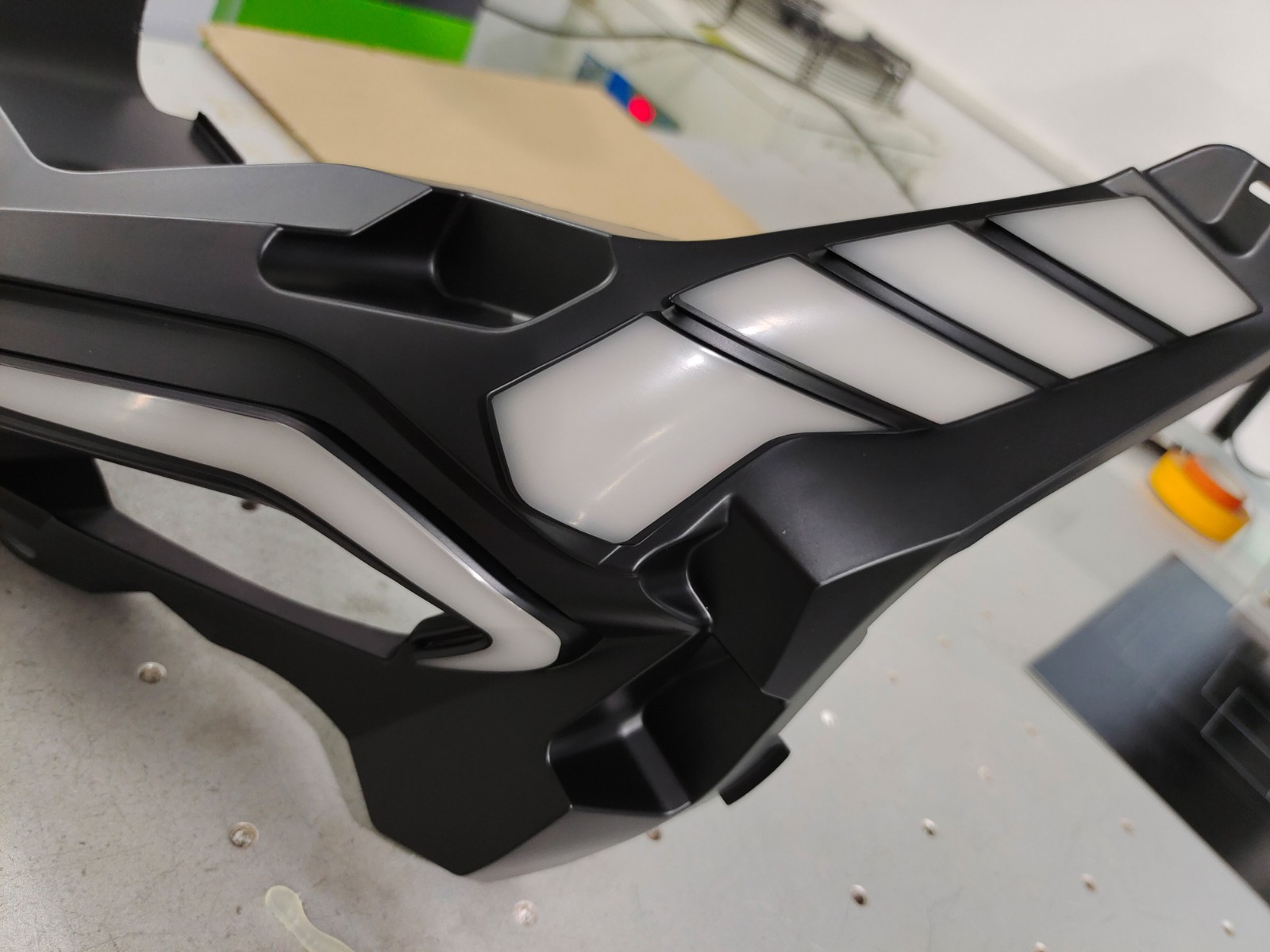 3D激光镭雕剥漆打透光工艺是摩托车装饰制造领域的一项创新技术,它通过高精度激光在摩托车前脸装饰件表面进行精细化处理,去除特定区域的漆层,形成透光窗口,实现夜间照明与日间装饰的完美统一。这项工艺不仅提升了摩托车的视觉识别度,更为整车增添了科技感与个性化元素。